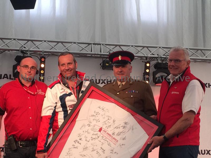 NW200 Scrutineers and assistants with Ian Crowe, AANI, with the autographed t-shirt. Race day Scrutineers tent. Taken by Gary McKillop (13/05/17).