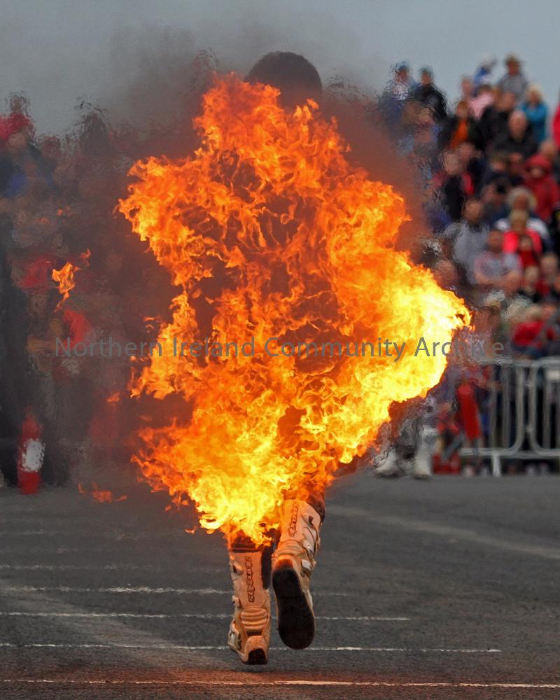 Stuntman makes good his escape at the NW200 show in Portrush. Taken by Wilbert McIlmoyle (10/05/17).