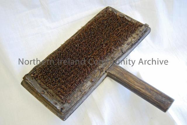 Card for Carding Wool. (One of a pair of cards for carding wool with a large tooth carding comb). Courtesy of Ballycastle Museum.