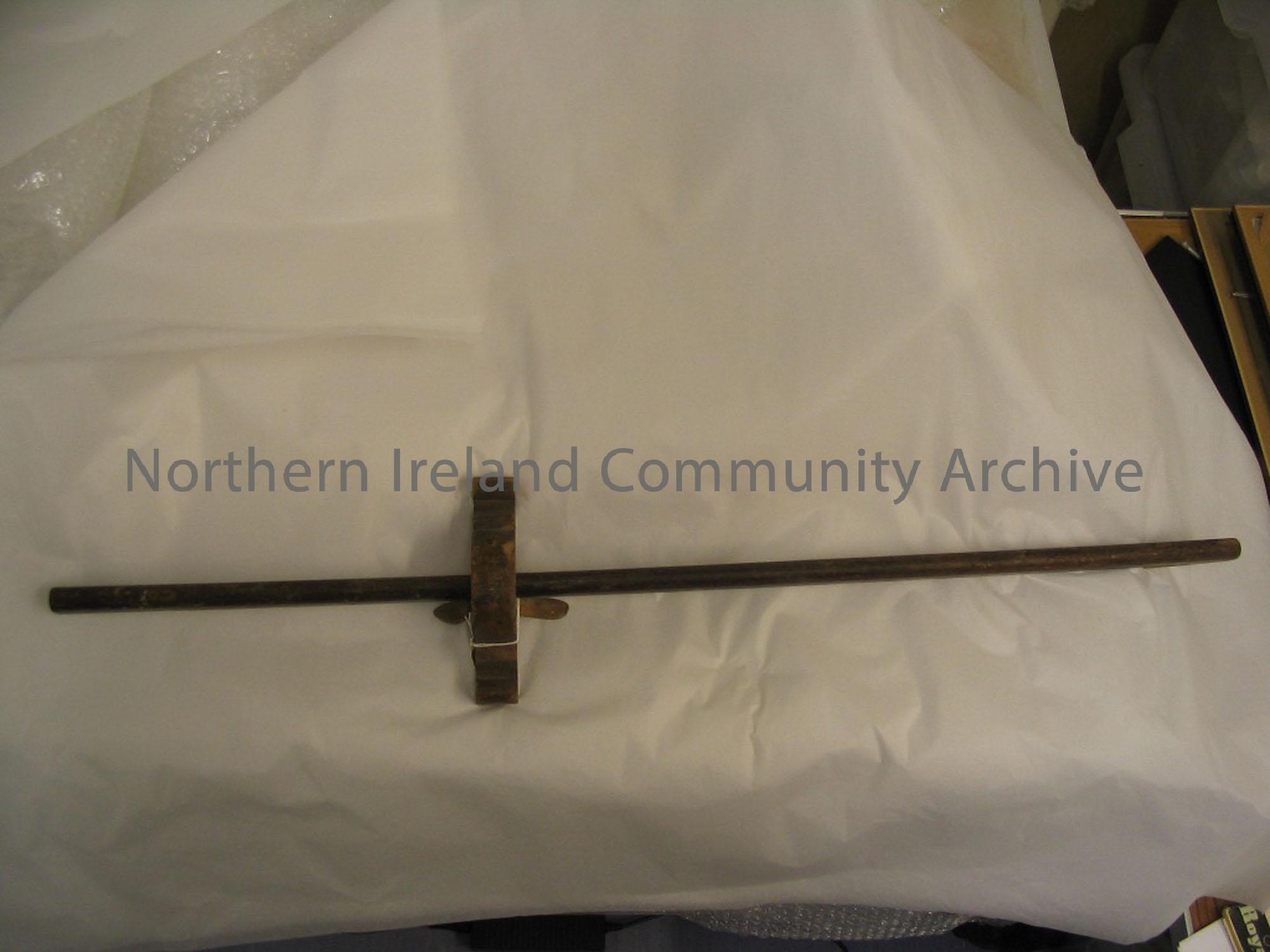 Carpentry tool dating from early 20th century. Wooden measuring implement. Inscribed with the name J. Bell.