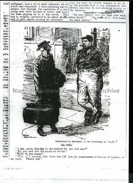 Cartoon satirising Striking Workers. Printed in The Larne Times and Weekly Observer, 13/09/1913.
