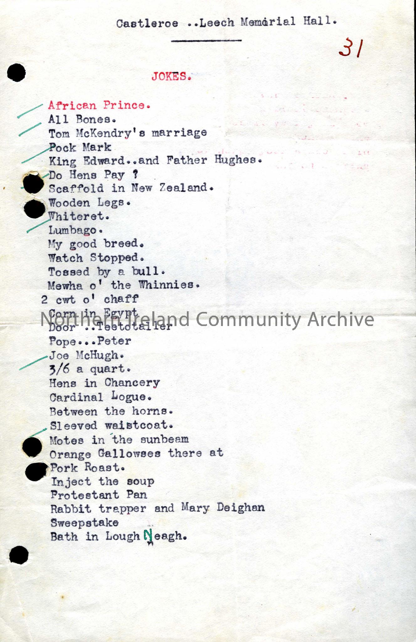 Castleroe Leech Memorial Hall - Jokes