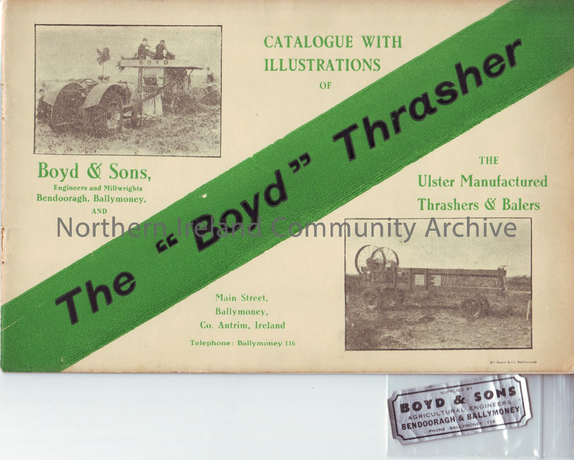 Catalogue with illustrations of The ‘Boyd’ Thrasher by Boyd & Sons Engineers & Millwrights, Bendooragh, Ballymoney- included is a small label ‘Boyd & …
