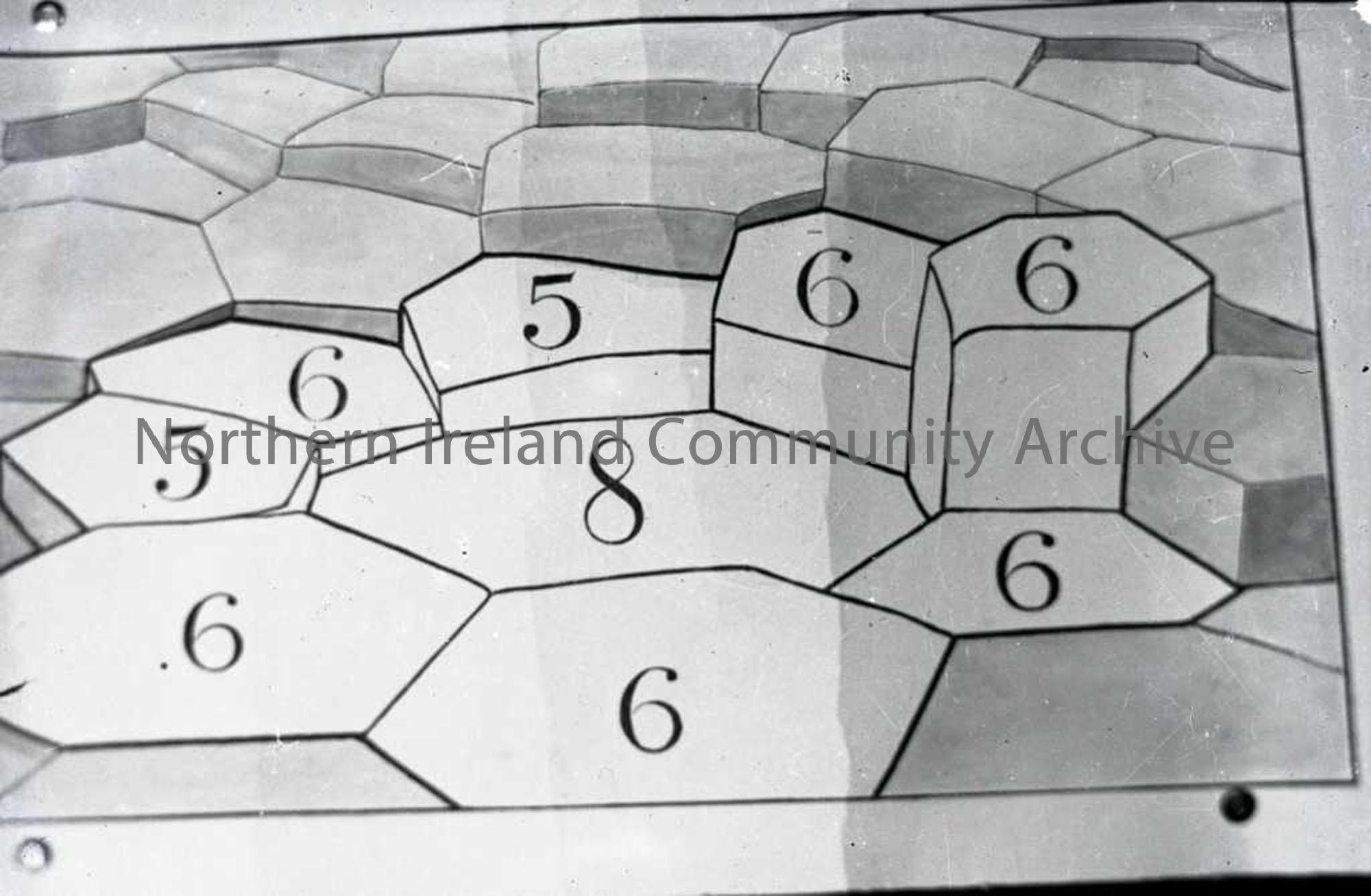 Abstract diagram of several causeway stones, numbered according to number of sides. No 133 in Nature Slides inventory
