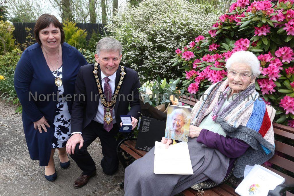 Centenarians receive commemorative coin from Mayor of Causeway Coast and Glens Borough Council – Margaret Mitchel (1)