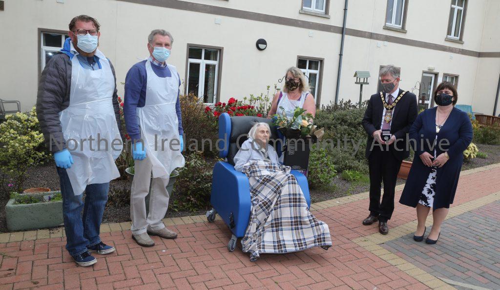 Centenarians receive commemorative coin from Mayor of Causeway Coast and Glens Borough Council – Sarah Wilson (2)