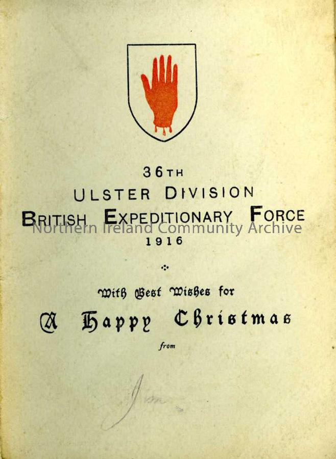 36th Ulster Division Christmas Card, 1916.