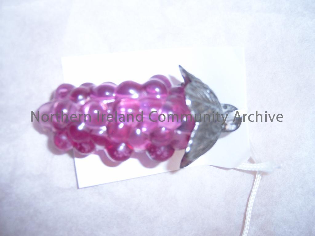 Christmas decoration. Purple plastic grapes with silver leaves, c 1950s/60s