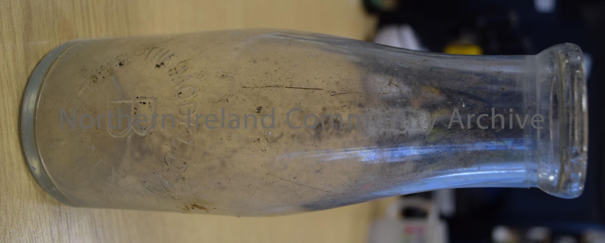 Clear glass milk bottle from the Model Dairy, Ballymoney.