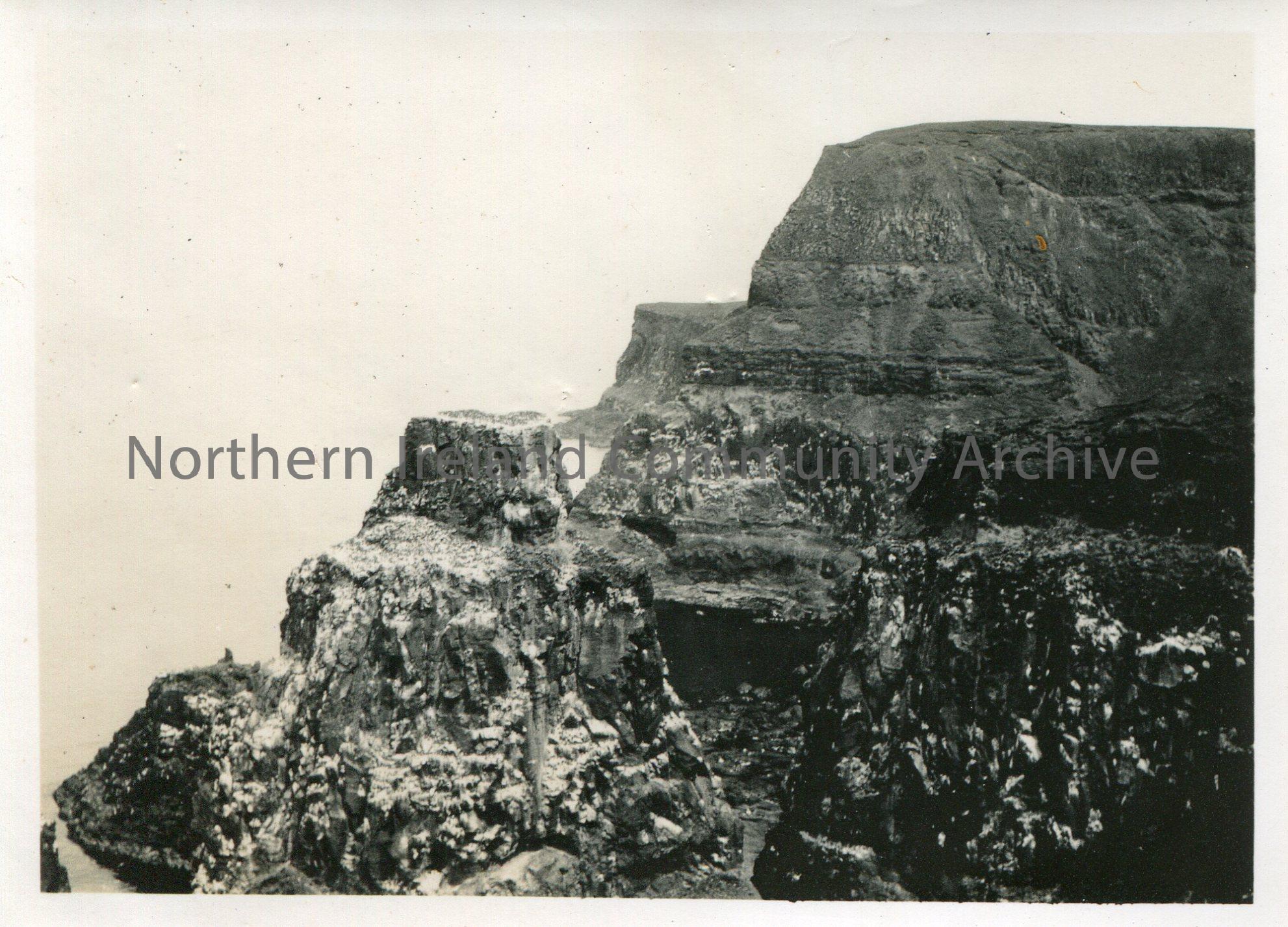 Cliff edge captioned in handwriting on reverse, ‘Rathlin bird stack’.