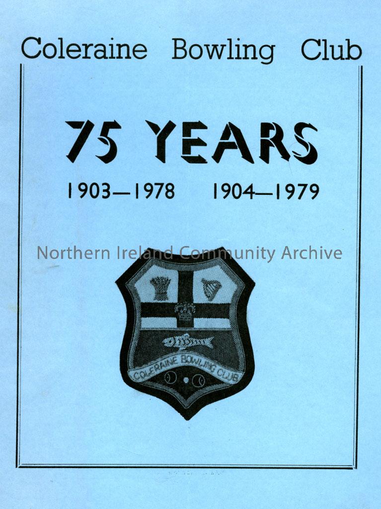 Coleraine Bowling Club 75 Years 1903-1978 1904-1979