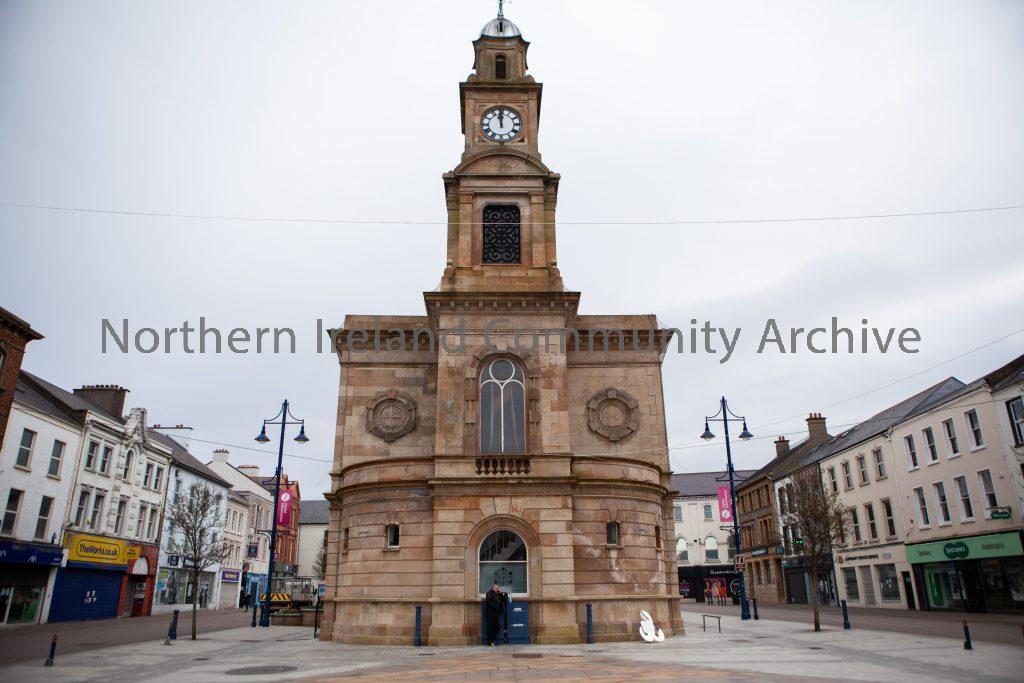 The Town Centre at noon in Coleraine on 20th March 2020 on the first day of imposed social distancing measures announced by the Government, in an attempt to control the spread of Covid-19 throughout the population.