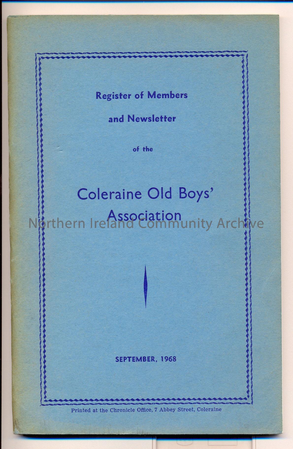 book titled, 'Coleraine Old Boys' Association' September 1968.