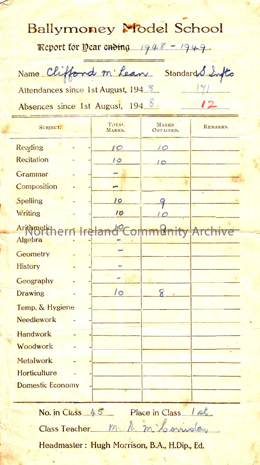 Collection of Ballymoney Model school report ca...