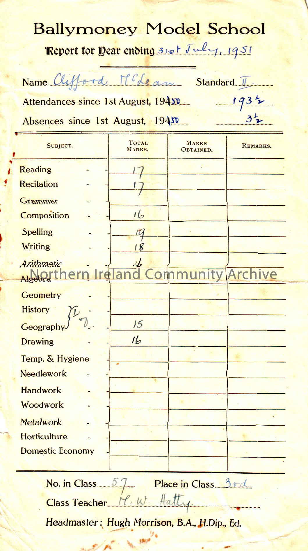 Collection of Ballymoney Model school report ca...