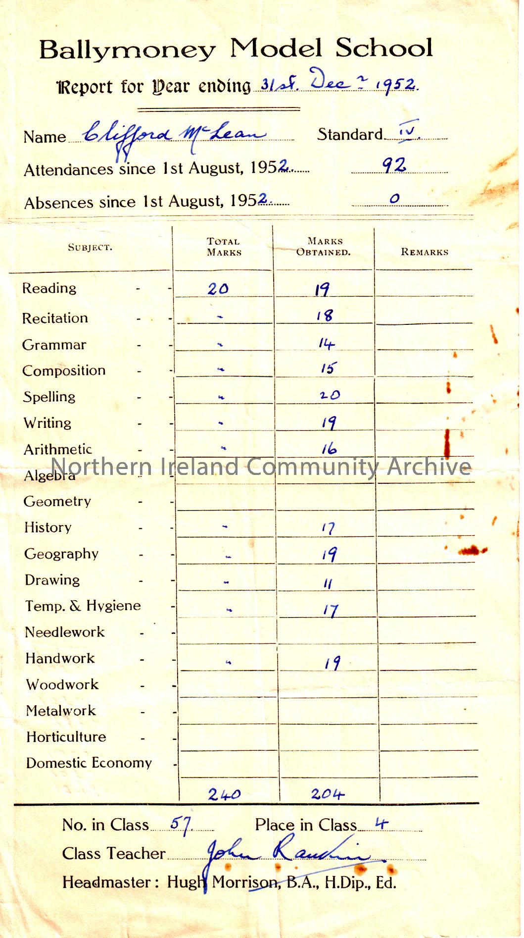 Collection of Ballymoney Model school report ca...