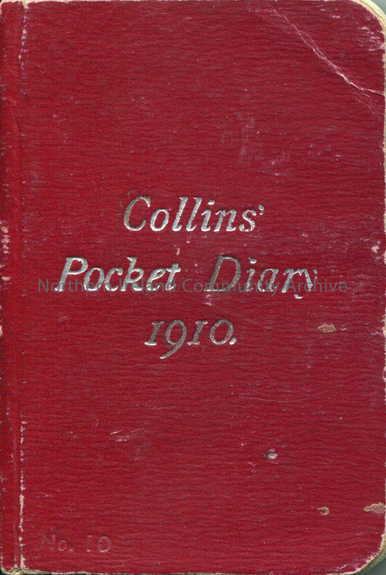 Collins’ Pocket Diary, 1910. Dark brown/red cover. Diary of Sam Henry. Entries cease from 17th August 1910.