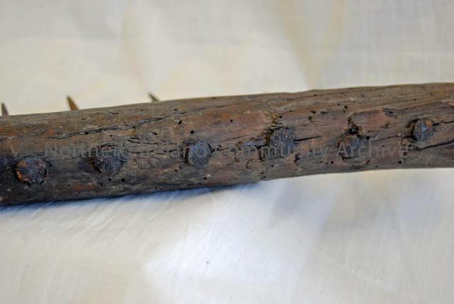 Handle of acomb or rake - used for combing thatch and laying all the straws in the same direction. Courtesy of Ballycastle Museum.