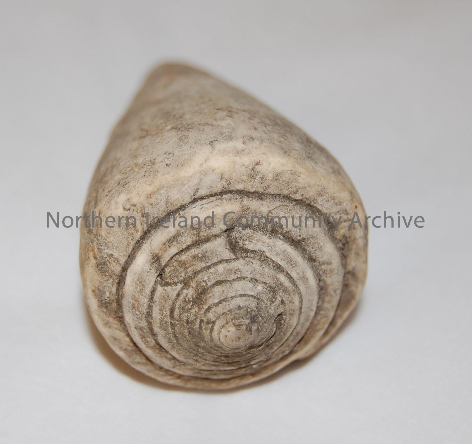 cone shaped, formed into spiral on upper face; species origin unknown – 1998.107 (1)