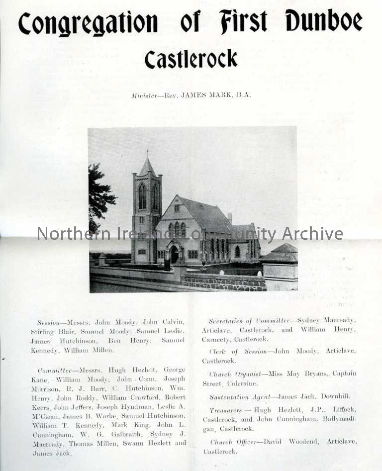 Printed piece on Congregation of First Dunboe Castlerock - appears to be a church news sheet