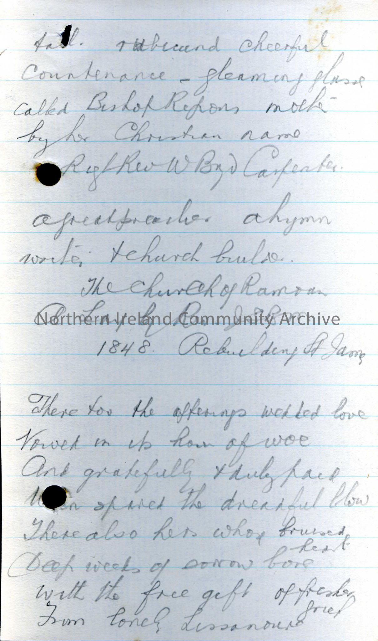 Continuation of notes on the the life and career of Rev. John Samuel Bewley Monsell, B.A., including notes taken from “Leslie’s Derry Clergy”. He is d…