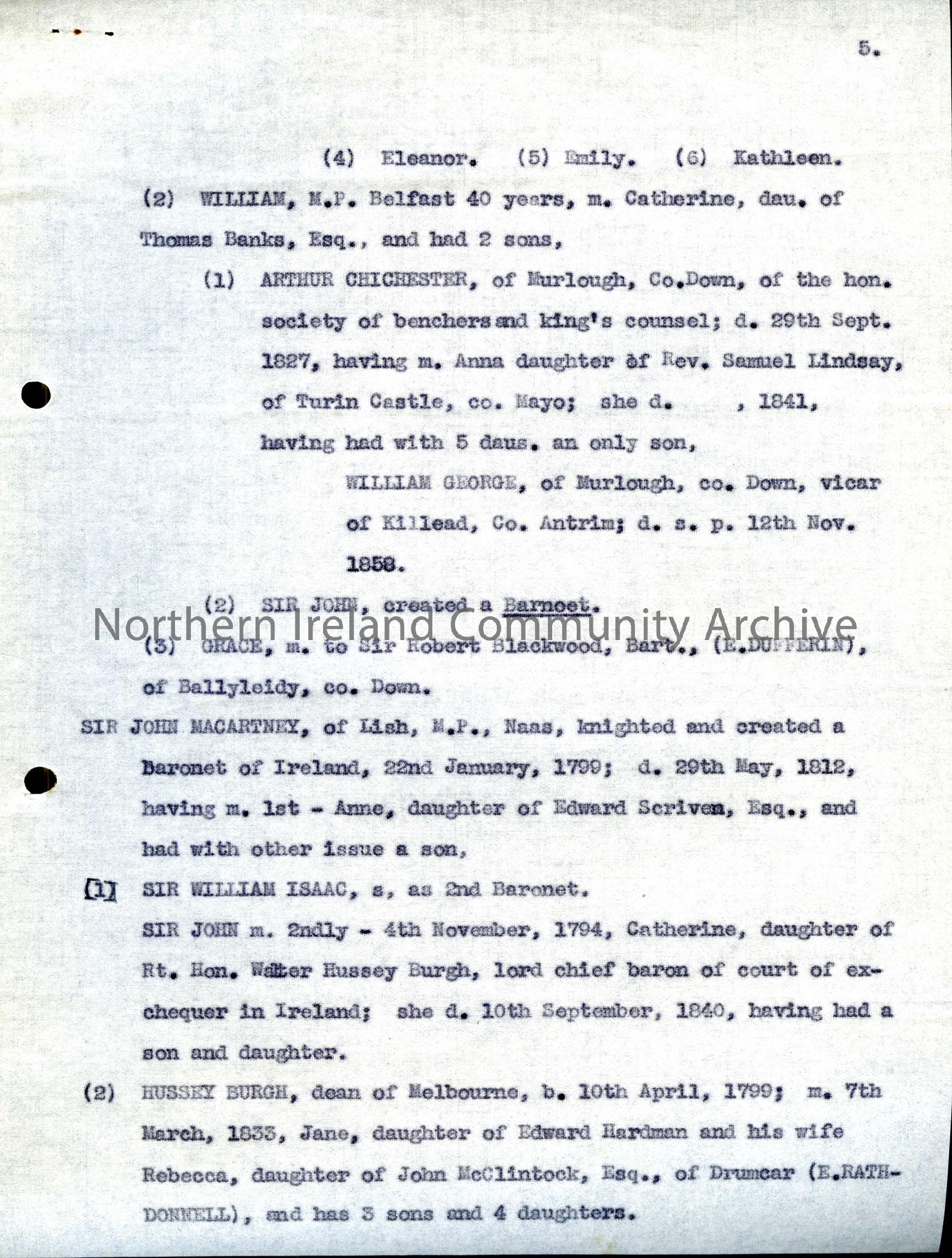 Continuation of the family tree of Sir John Macartney taken from “Foster’s Peerage” of 1880. As well as family details it gives some biography. This p…