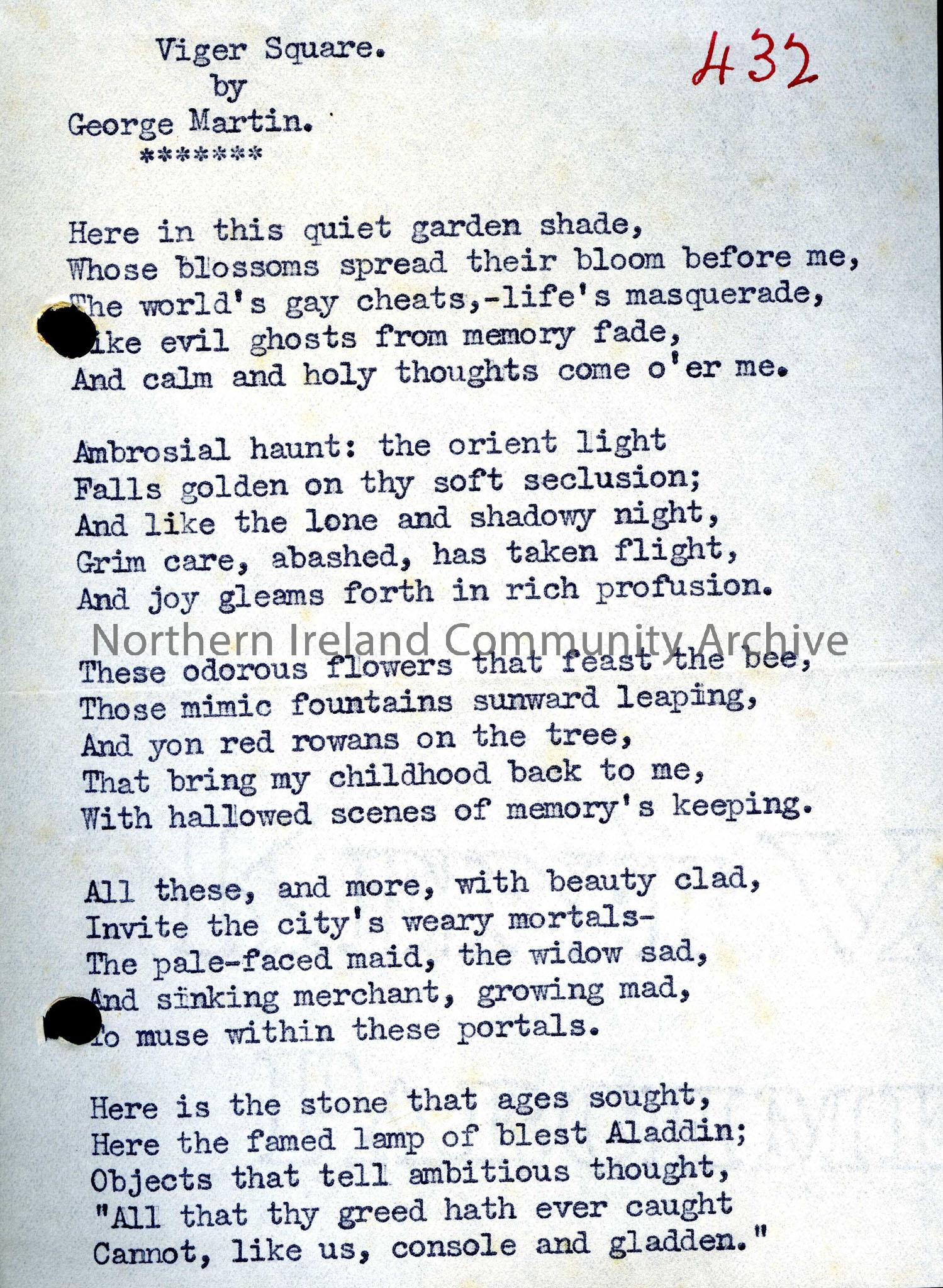 Copy of "Viger Square", a poem by George Martin.