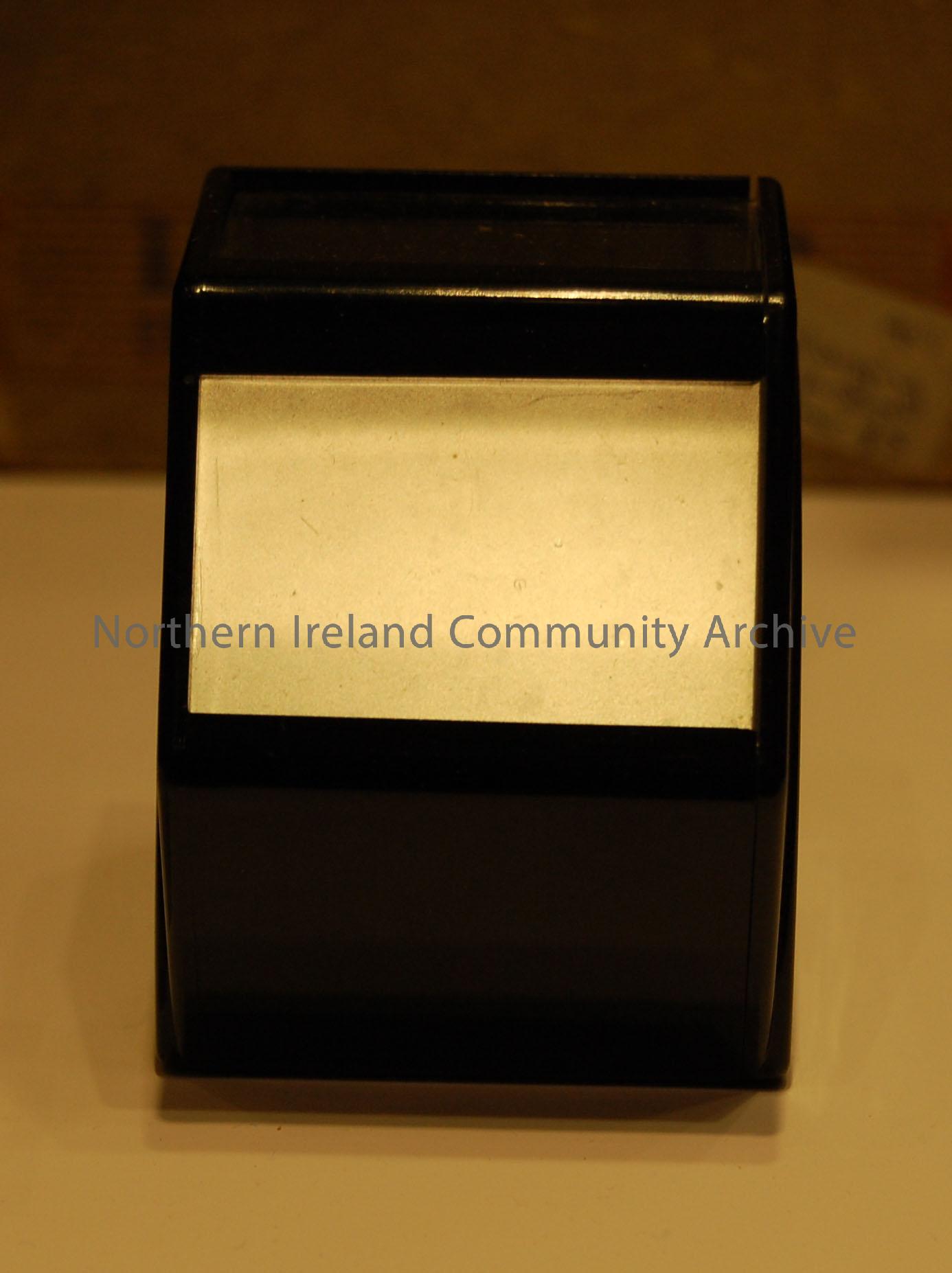 Corfield C & J Focus finder with original box. A simple device to aid focusing when using as enlarger. Made from black plastic with a ground glass scr… – 2013.79