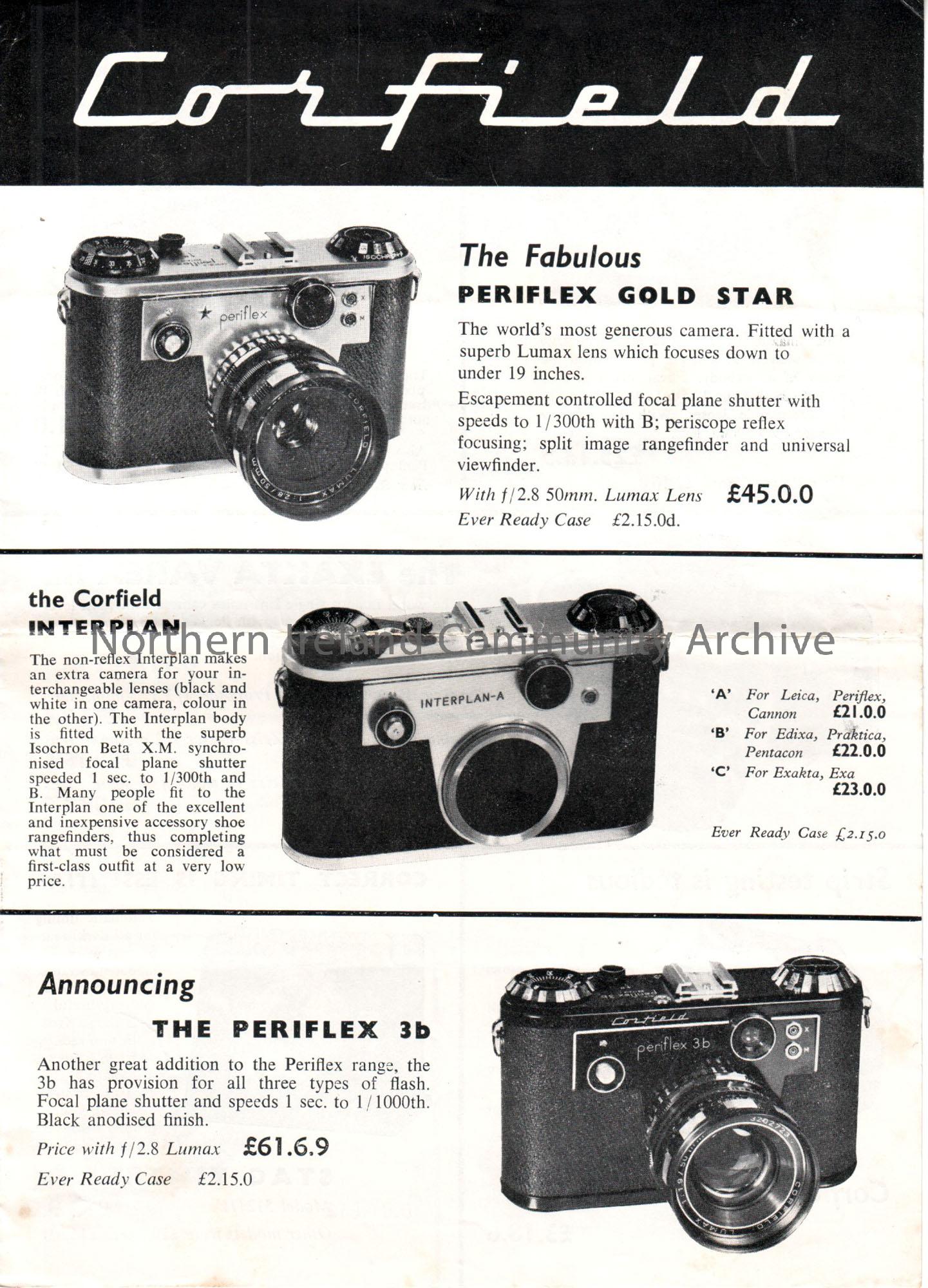 Corfield camera brochure and Brochure of examples of click stop and preset diaphragm lenses