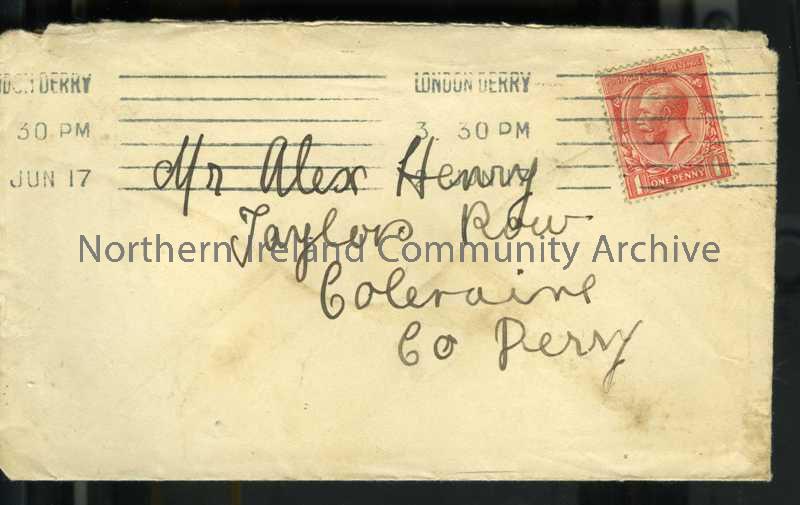 Cream addressed envelope with Londonderry PO stamp