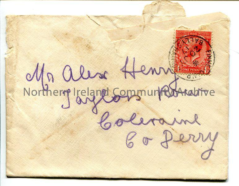 Cream addressed envelope with stamp of Finner Camp, Ballyshannon