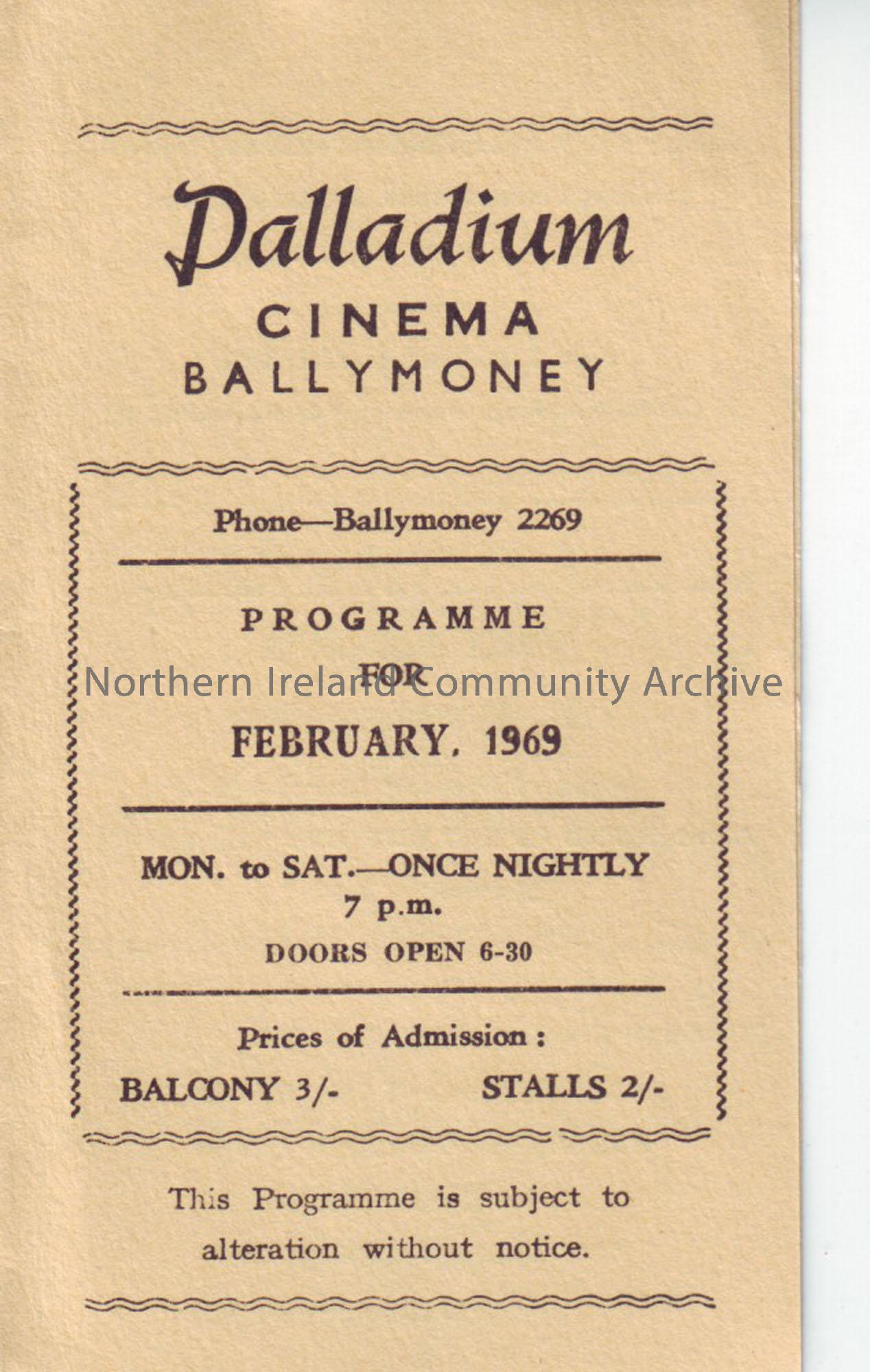 cream monthly programme for Ballymoney Palladium cinema- February 1969