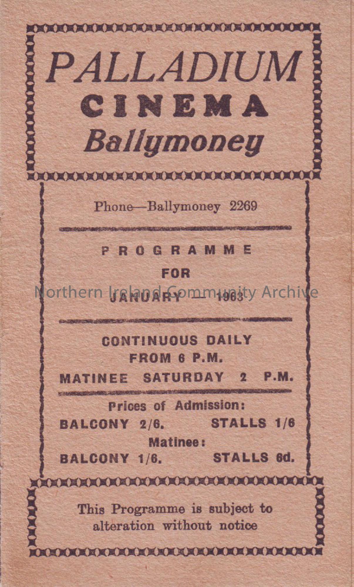 cream monthly programme for Ballymoney Palladium cinema- January 1963