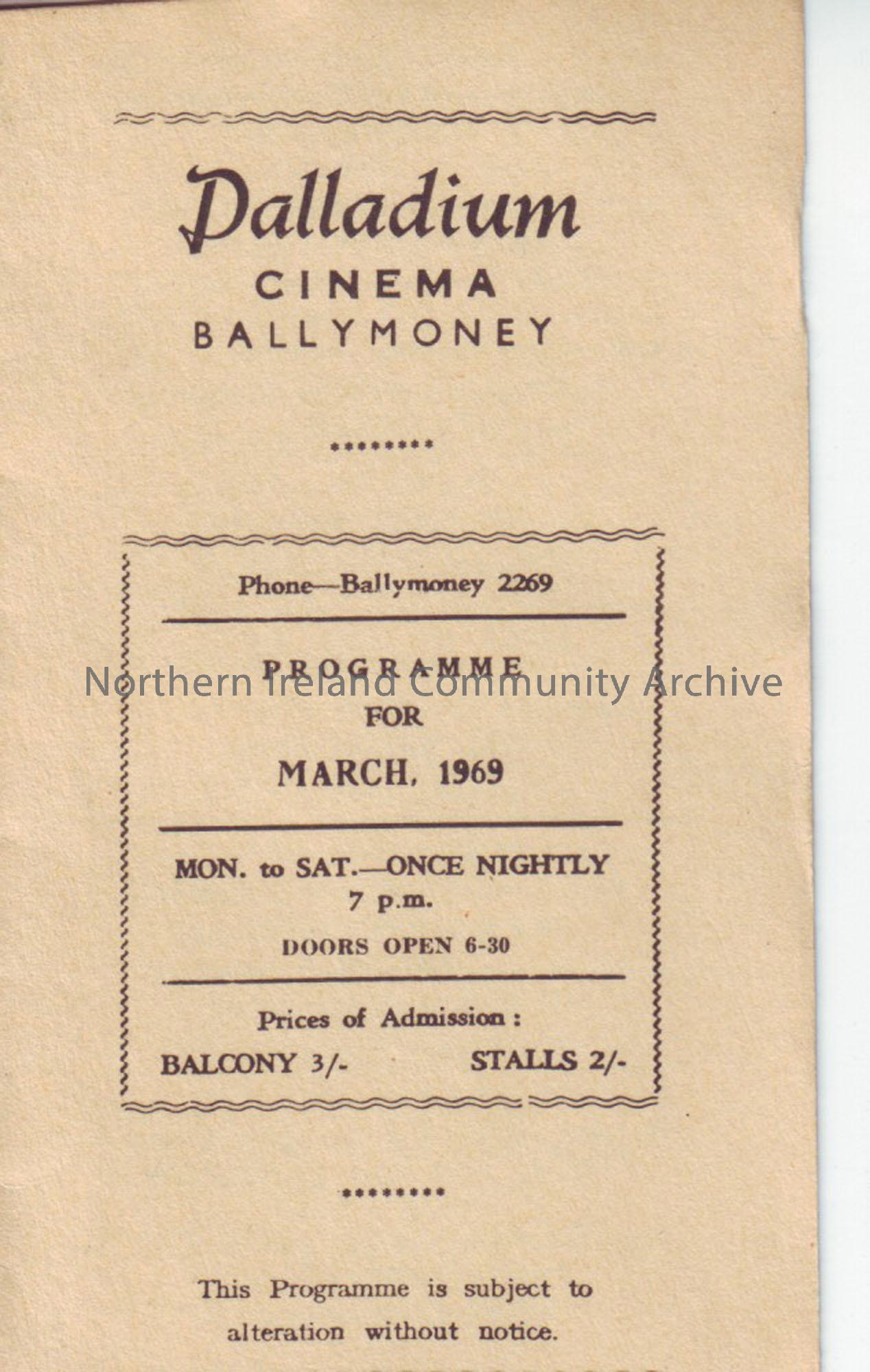 cream monthly programme for Ballymoney Palladium cinema- March 1969