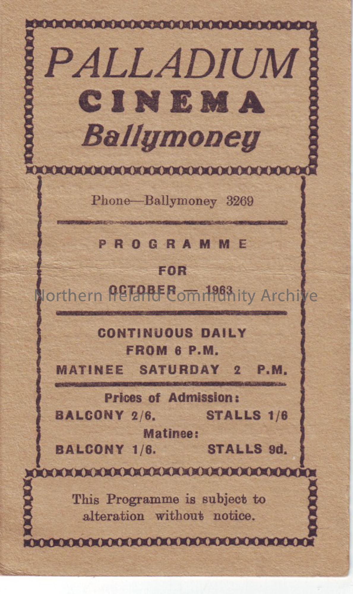 cream monthly programme for Ballymoney Palladium cinema- October 1963