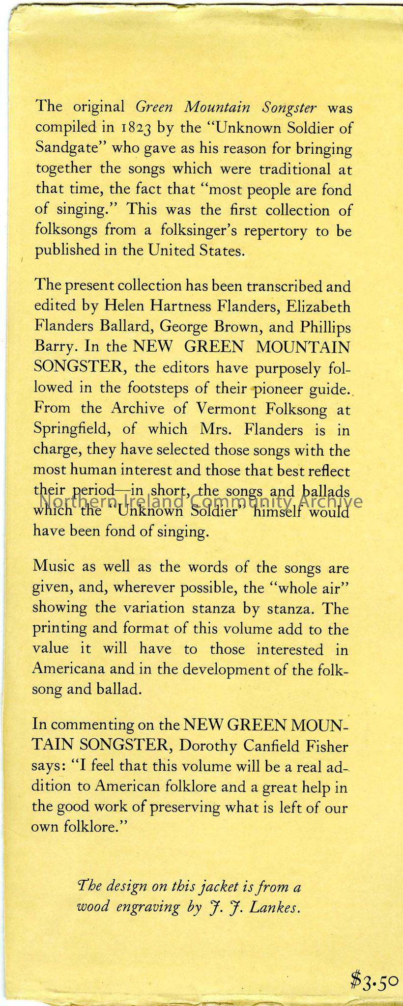 cut-off section of dust cover from The New Green Mountain Songster.