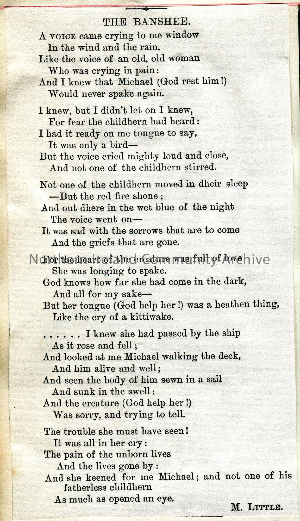 Cutting from a publication of a poem titled, 'The Banshee' by M. Little.