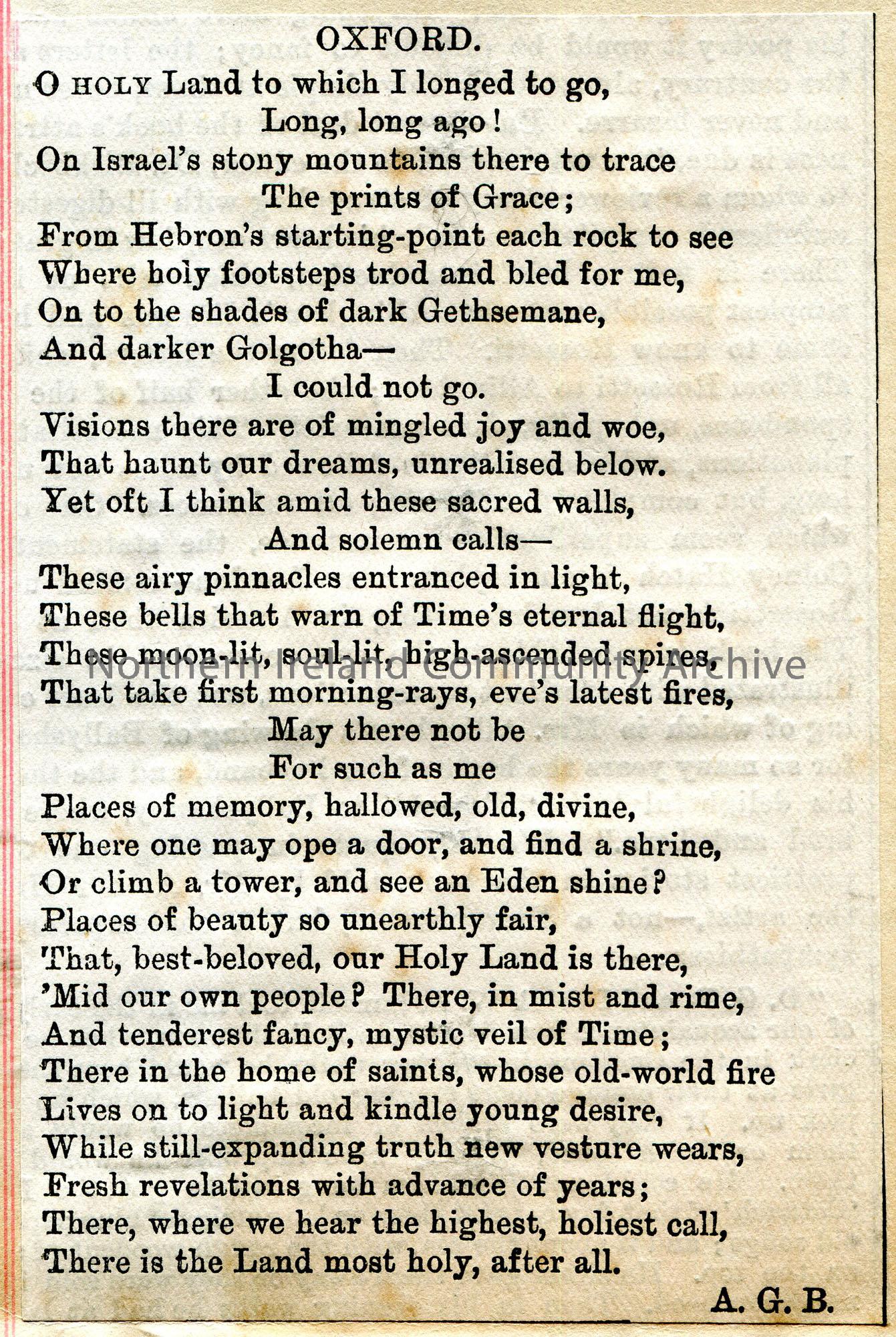 Cutting from a publication titled, ‘Oxford’. By A.G.B.