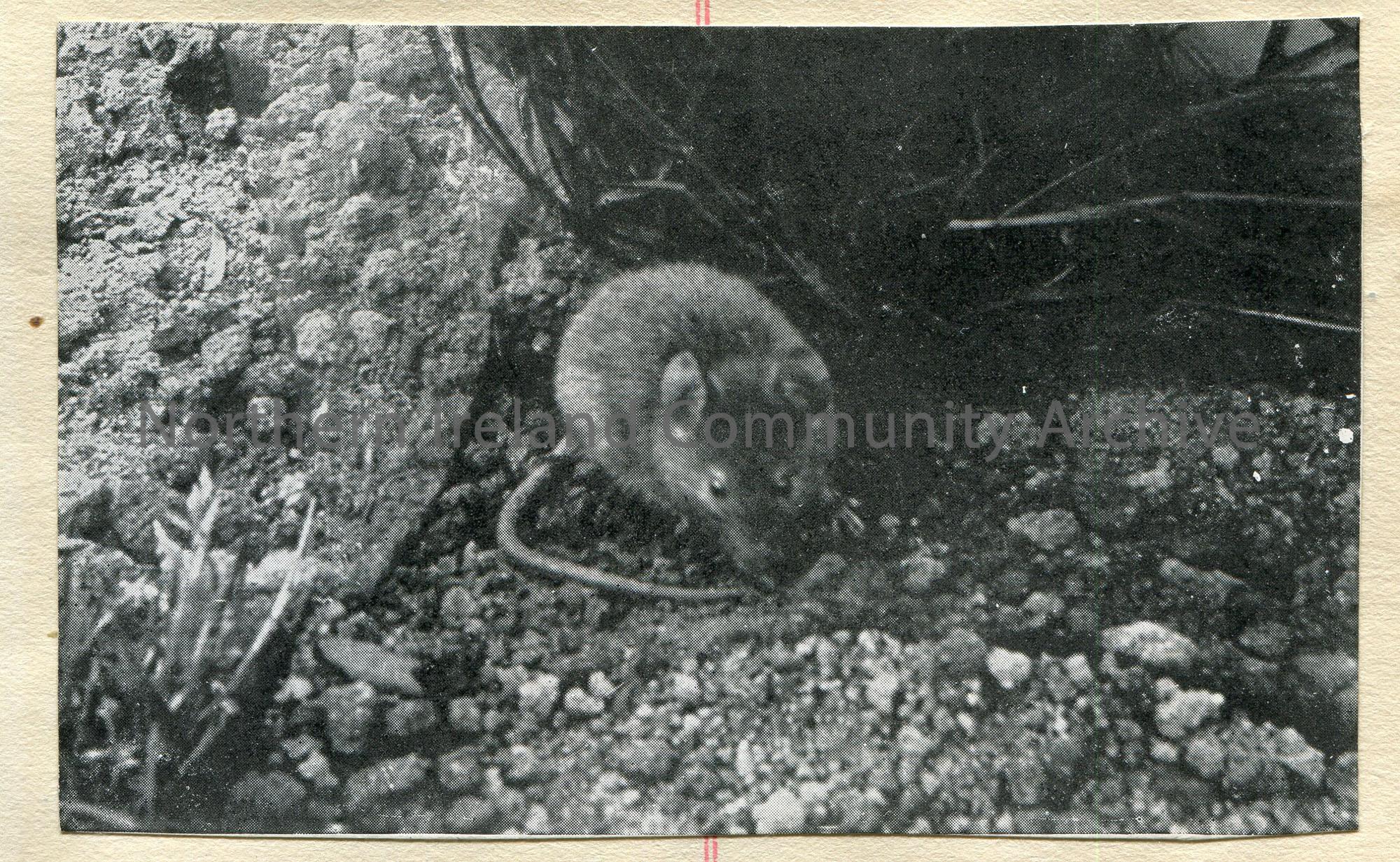 Cutting of a black and white photographic image of a small mouse.