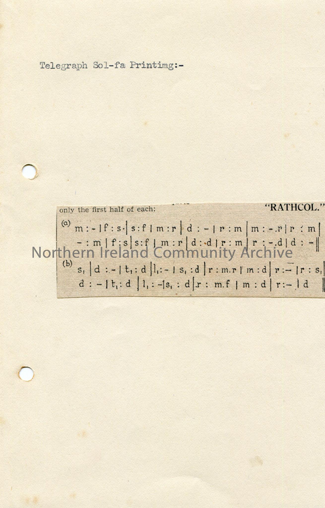 Cutting of a printed sol-fa notation to ‘Rathcol’ from the ‘Telegraph’ newspaper.