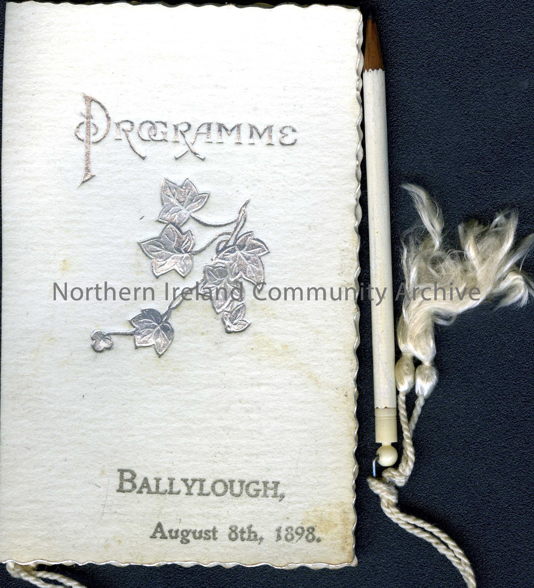 Dance card or programme. Ballylough, August 8th 1898. Pencil attached.