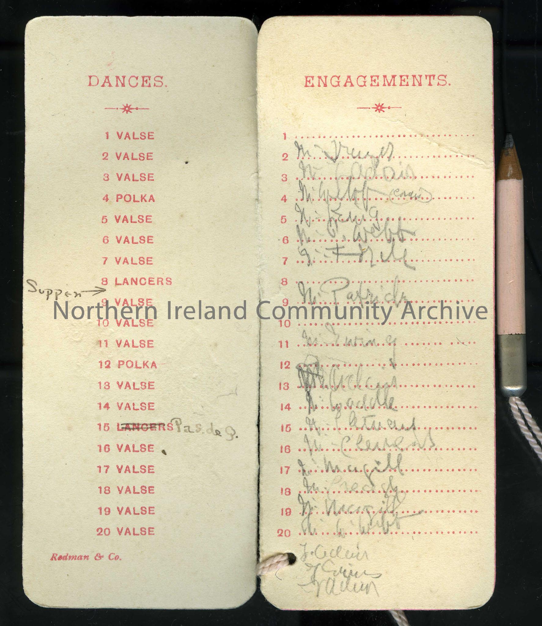 Dance card or programme. Entitled “The Dances”. The Trocadero, 28.12.20 written of front. Names inside. – scan44b
