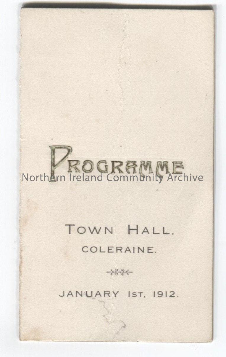 Dance card or programme for Town Hall, Coleraine, January 1st 1912.