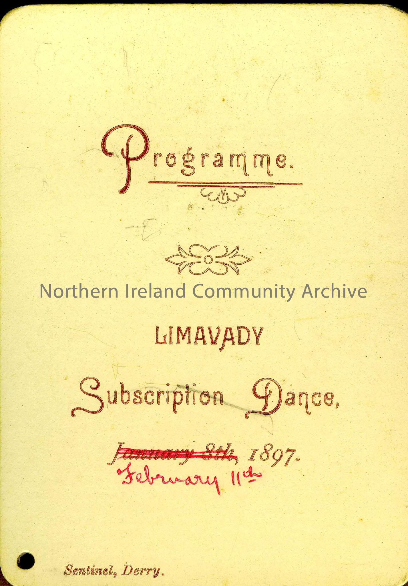Dance card or programme. Limavady Subscription Dance, 11th February 1897.