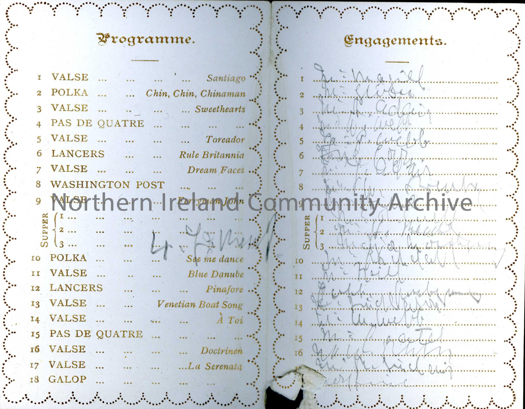 Dance card or programme. List of the Dances. Undated. Names inside. – scan025b