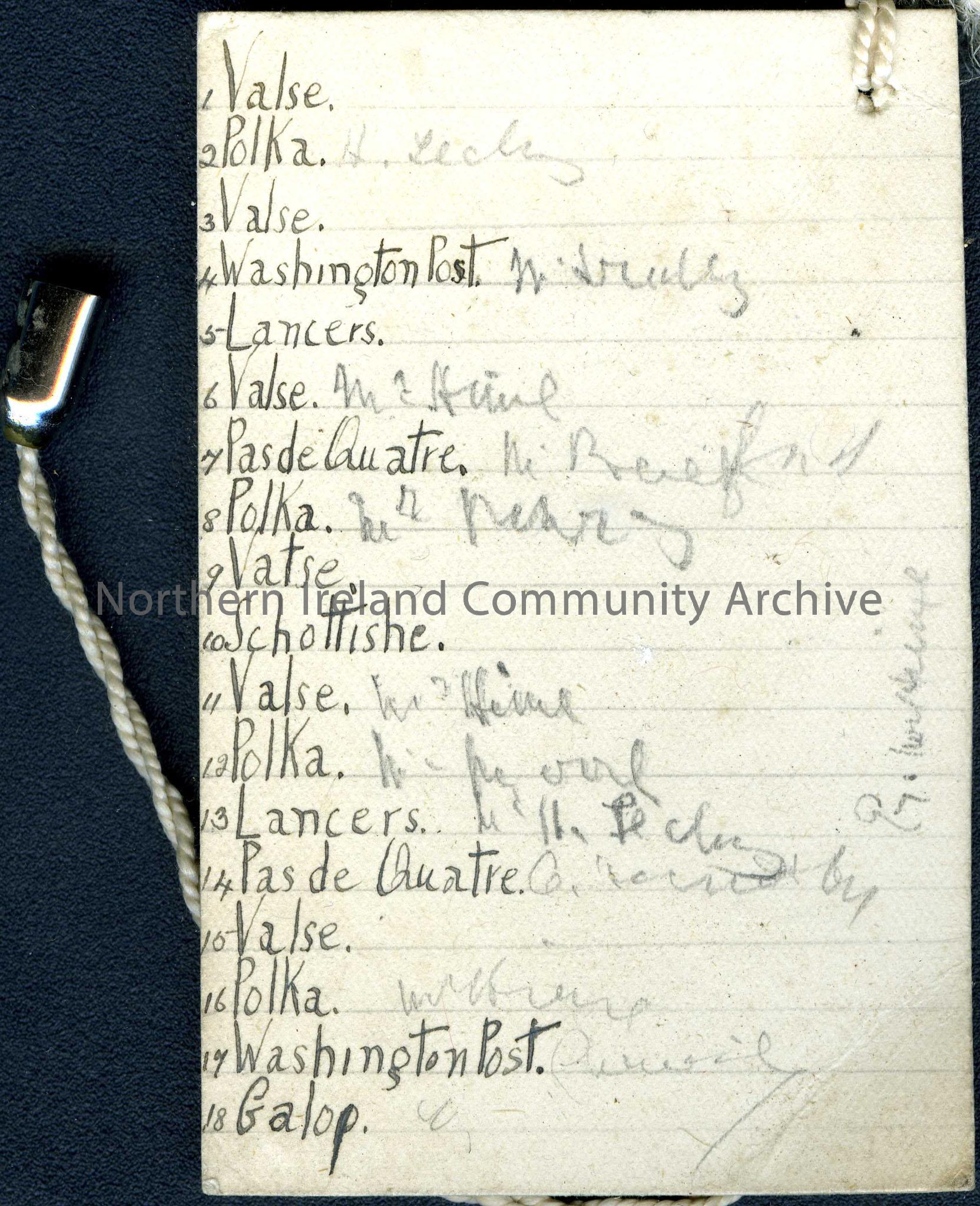 Dance card or programme. Portrush, 4th January. String attached but pencil is missing. – scan020b