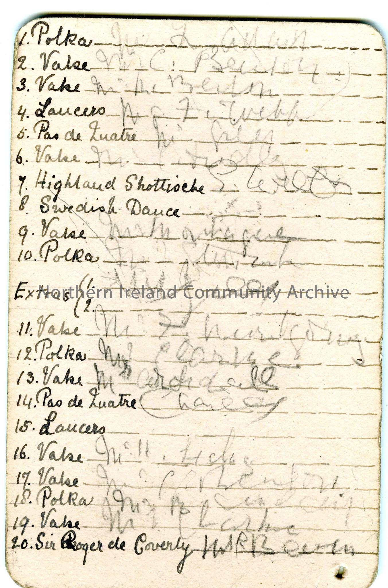 Dance card or programme. List of names on one s...