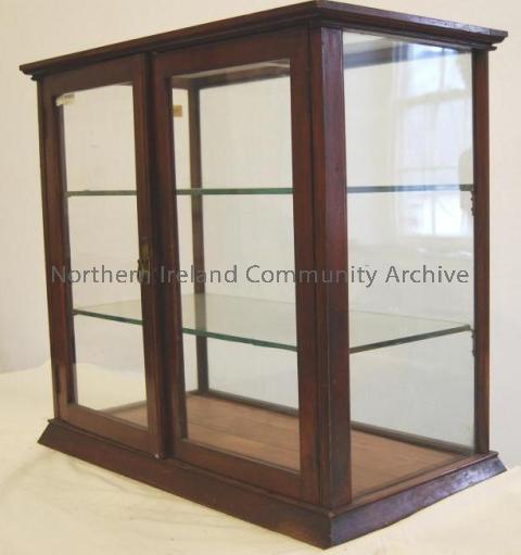 Glass showcase from the Irish Home Industries Workshop. Referred to as Table Top Cabinet. Courtesy of Ballycastle Museum.