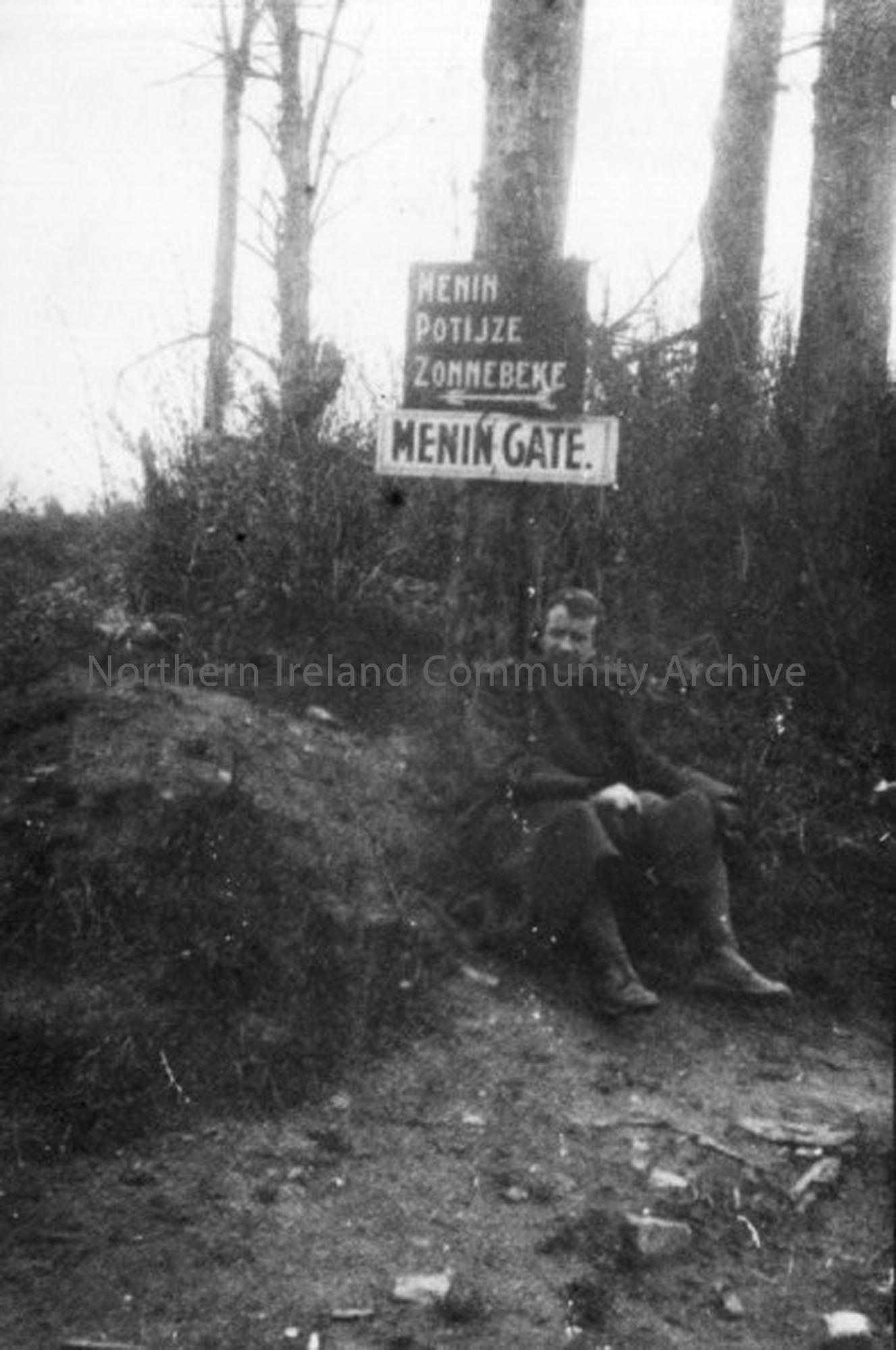 Doctor G.W.Rea, resting at the Menin Gate.These photographs are reproduced from the album of Major John C. Robb, Royal Army Medical Corps, 108th Field Ambulance, 36th Ulster Division