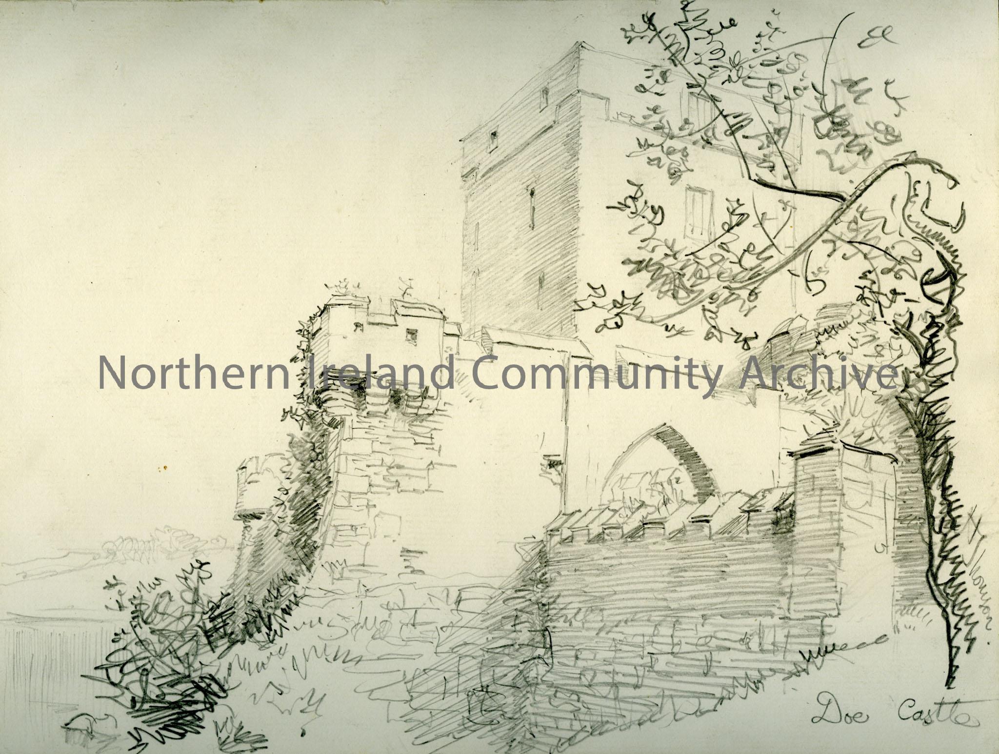 artwork titled, 'Doe Castle' by Hugh Thomson for 'Highways and Byways in Donegal and Antrim' by Stephen Gwynn. Could possibly be for page 198 in book.